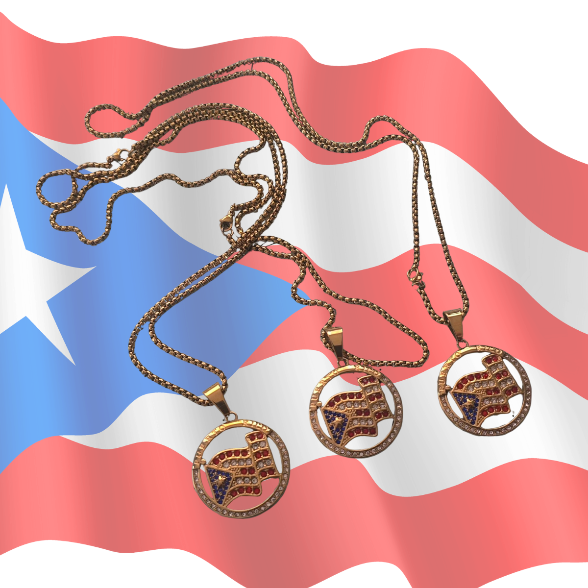 Puerto Rico Flag Round Pendant with red and blue stones with chain